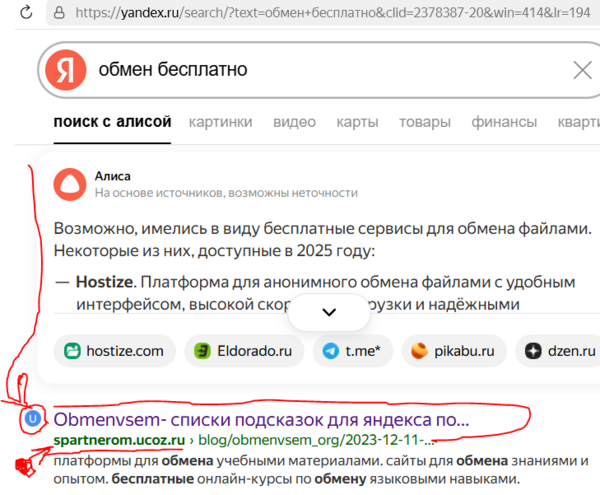 странице выдачи Яндекса ... )